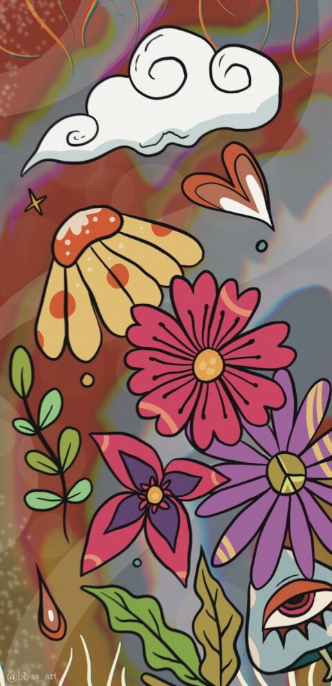 C’est un certain Humphrey Osmond, psychiatre et chercheur anglais, qui utilise pour la première fois le terme psychedelic. Le terme désigne cette forme d’inspiration et de création artistique qui résulte de l’absorption d’hallucinogènes. Aux alentours de 1940, on parlait déjà d’expérience psychédélique, proposées par les chercheurs aux poètes et artistes. Un siècle plus tôt, Baudelaire s’intéressait aux relations entre les drogues et la création poétique. L’art psychédélique se manifeste en partie dans la littérature (Aldous Huxley) et les arts visuels : affiche de concert (Stanley Mouse), couverture d’album, peinture murale, fanzine…, puis s’est développé dans les arts de la scène avec des jeux de lumières scéniques ou encore dans le cinéma. Il est caractérisé par une identité visuelle propre : motifs kaléidoscopiques, couleurs vives et contrastées, écriture originale avec des lettres épaisses et courbes qui s’imbriquent les unes dans les autres, et d’autres encore. Le motif floral tient une importance capitale, symbole de prospérité et de positivité : c’est le flower power.