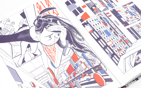 En 2021, Léa Murawiec a signé son premier album, Le Grand Vide, né d’une résidence à la Cité de la Bande Dessinée. Diplômée de l’École Estienne et passée par l’EESI d’Angoulême, elle revendique un style hybride, mêlant les influences de la bande dessinée européenne et des mangas. Sa patte graphique s’impose comme un mélange singulier : d’un côté, la ligne claire occidentale, influencée par des œuvres telles que Jimjilbang et Citéville de Jérôme Dubois ; de l’autre, un travail minutieux sur les trames droites et les volumes épurés, à la manière de l’artiste Yuichi Yokoyama.