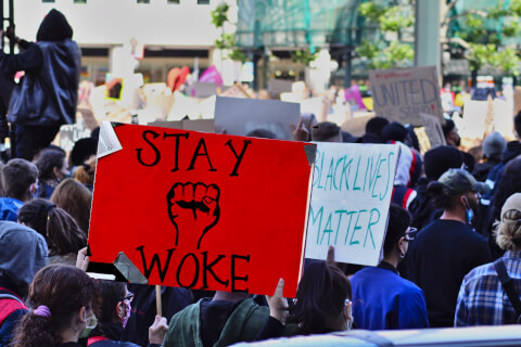 “Be woke” et son dérivé “le wokisme” sont Issus de l’expression anglaise “I stay woke”, qui existait chez les militant·es noir·es depuis le discours de Martin Luther-King en juin 1965. “Be woke” encourageait les étudiant·es de l’université d’Oberlin (Ohio) à être lucides face aux inégalités, raciales notamment, et d’y faire face. L’expression a ensuite perdu cet usage jusqu’en 2013, où elle s’est vue reprise par les militant·es du mouvement Black Lives Matter qui appelait, une nouvelle fois, au besoin de conscience du racisme systémique et des violences policières. Notons également qu’en 2008, Erykah Badu chantait “Master Teacher”, dans laquelle elle répétait de nombreuses fois “I stay woke”, rappelant l’expression du pasteur quarante ans auparavant.